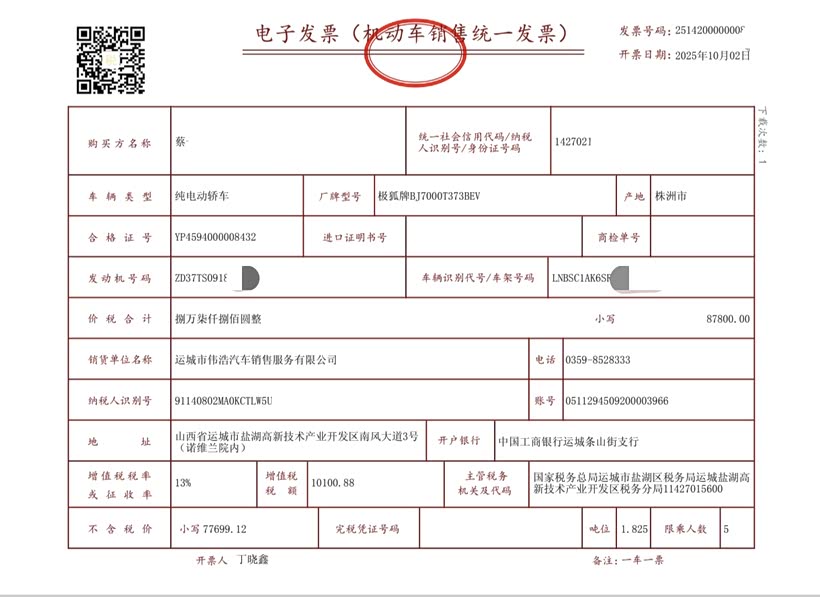 联系好山西的极狐门店,线上沟通清楚配置和补贴流程,立即就下定了。虽说得跑趟山西提车,但一想到能多省5000块,还不用跟人抢券,觉得这折腾特别值,毕竟买极狐T1,能省一点是一点,还得是“稳赚”的省!