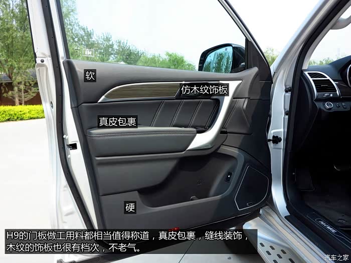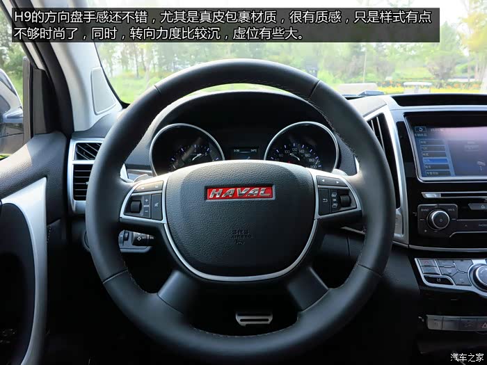 提到这台H9,首先感觉就是大,确实很大,无论是外形还是内部空间,这一点倒是满足我们中国人的口味。外观方面虽然仍存一些模仿痕迹,但是已经很大程度融入了哈弗自己的特色,钣金做工也比之前的产品有了非常大的提升。拉开车门,内饰属于比较简洁的风格,设计和用料都绝对不输同价位合资车型,尤其是用料,整体来说非常下本,只是一些细节上还是可以做得更好,比如主驾的头枕略有晃动,比较松散,副驾则没有这个问题,明显是组装工艺的问题。不夸张的说,如果把哈弗的LOGO贴上,让我去接触这辆车,仅凭静态的感受,我绝对会认为它是一款合资的欧系产品。
