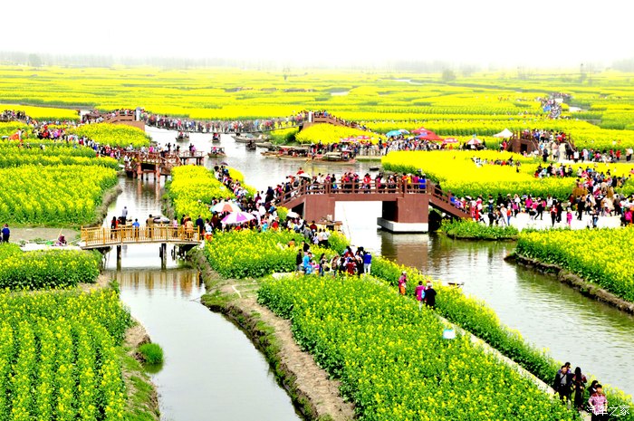 没事打开论坛,看到许多蚂蜂窝的游记,无意间瞄到江苏兴化千岛油菜花田的照片,被那一片金