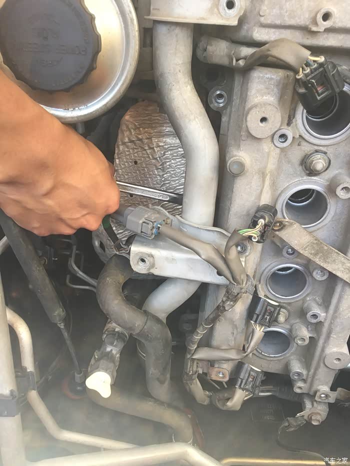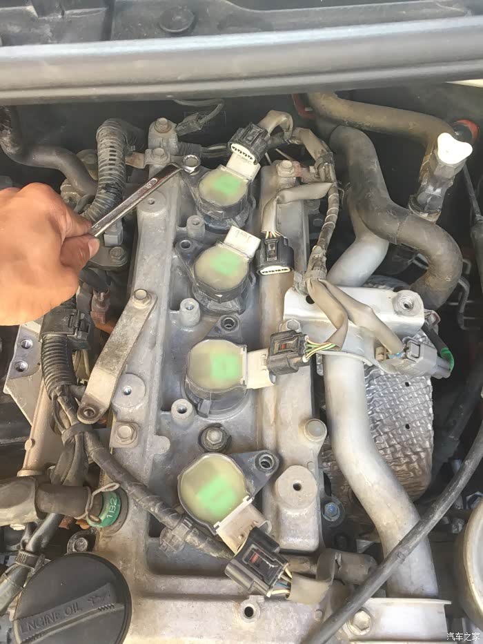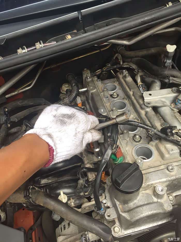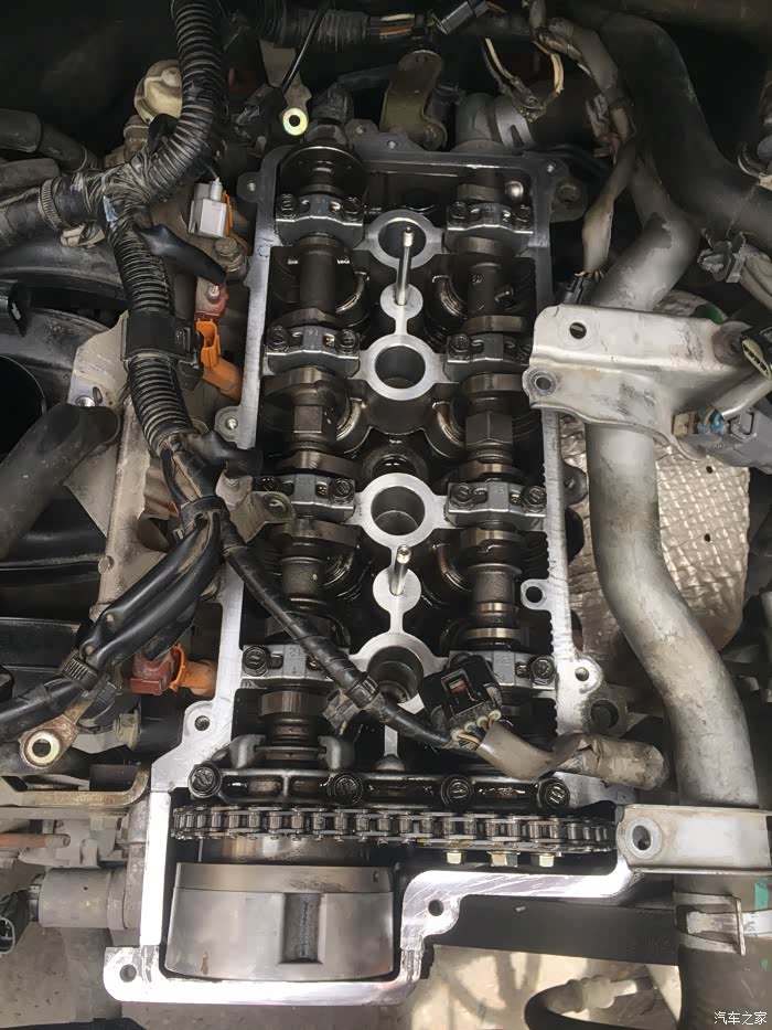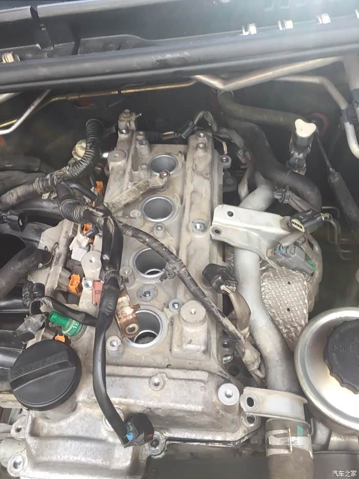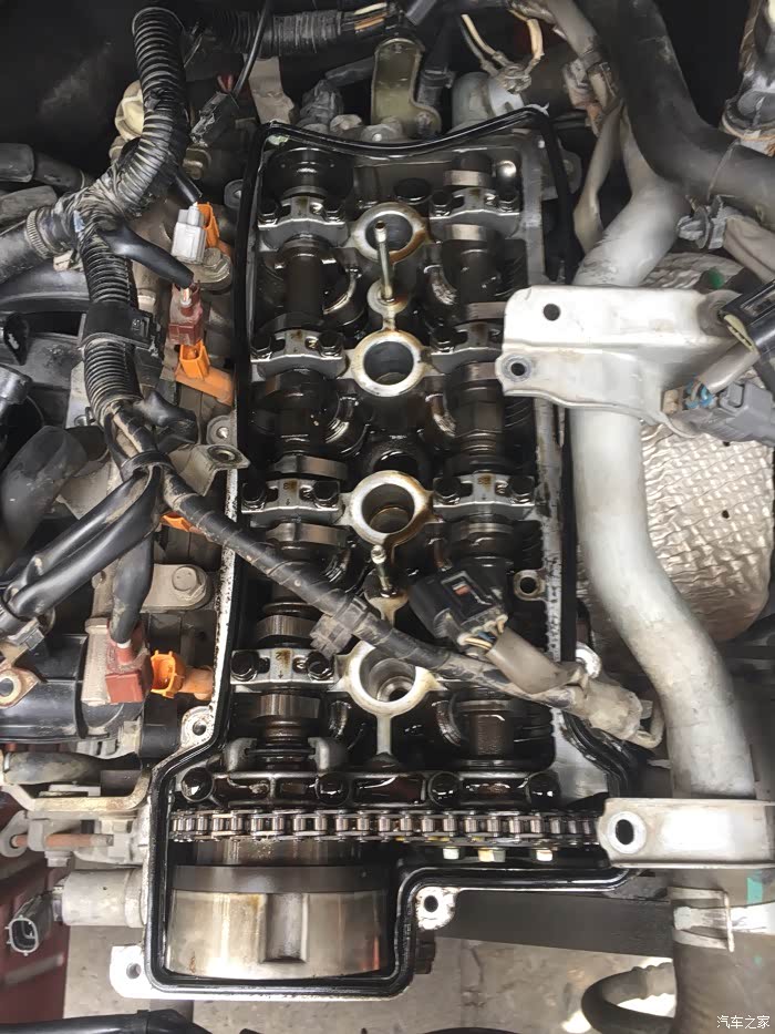 接下来就是拆洗喷油嘴了,拆下来之后发现蛮干净的,随便洗了一下没拍照……嘿嘿……该洗的都洗了,接下来就是拆气门盖了,拔掉上面所有的线束,然后拍照记录,接着一枚一枚螺丝拆下来放好,不能和之前那些螺丝混起来……要不然麻烦,所以都放地上,按循序放好,松螺丝时,可以使劲松,拧回去时,记住:千万要慢慢紧,差不多就行,要不然,铝制缸体很容易拧滑掉……拆出密封垫,原车主不知在哪修过,打过胶,里面有个火花塞垫没放好……导致火花塞缸体里面渗油……他奶奶的,真是不爱惜车的猪!清洗好气门盖顺便清理密封胶,晾干后再装上密封垫,直接装也可以,但是为了保险起见,每个弯头那我都打了发动机耐高温密封胶……弄好之后,原路返回,一个一个螺丝装,一个一个插头插……搞定!