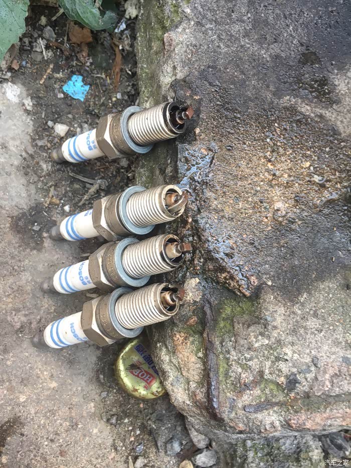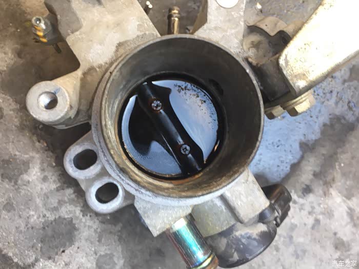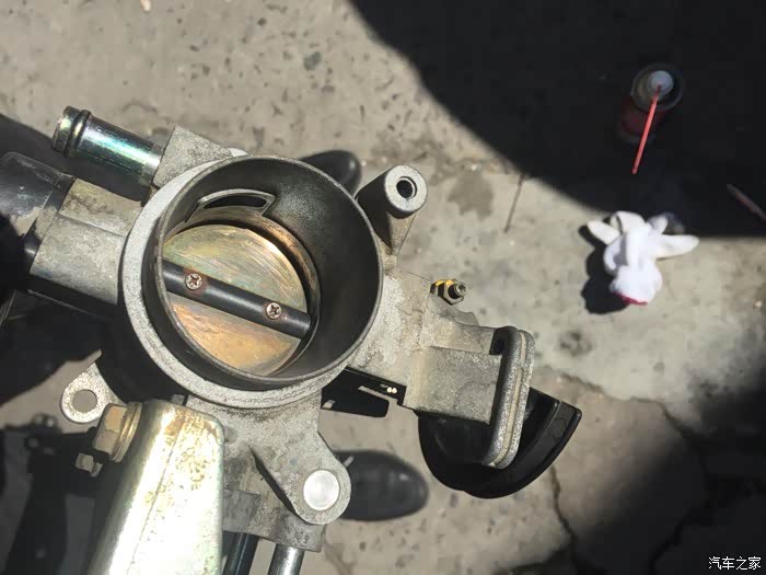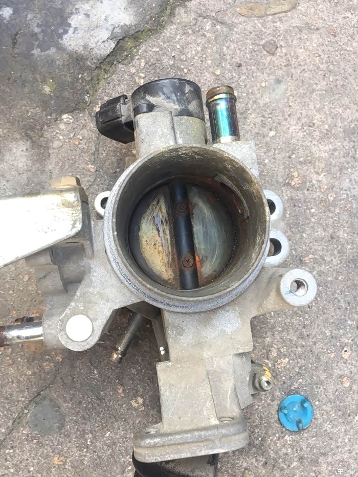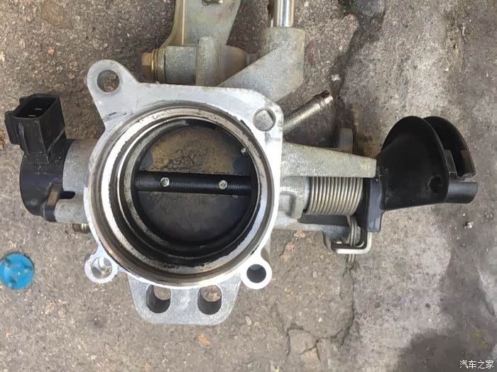 赶紧赶紧,先拆电瓶负极,再拆空滤总成,接下来拔掉总成上面的插头,卸完之后,再拆节气门,先把上面的插头和水管都拔掉,还有怠速电机也得拆下来,然后再拆节气门,有四颗螺丝??固定的哦……拆下来了一看,氧化泡水严重,都生锈了里面,积碳也蛮多的……嘎完蛋……节气门不会要报废的节奏吧……不管了,死马当活马医,拆洗时直接用化油器清洗剂洗,牙刷刷,之后再用最细的砂纸打磨内壁好了,说干就干……清洗完,节气门之后,再拆火花塞,用白醋泡一个小时拿出来用牙刷使劲刷,刷好之后喷半杯清洁剂浸泡半小时,再拿出来刷,刷好以后用吹风机热风猛吹……