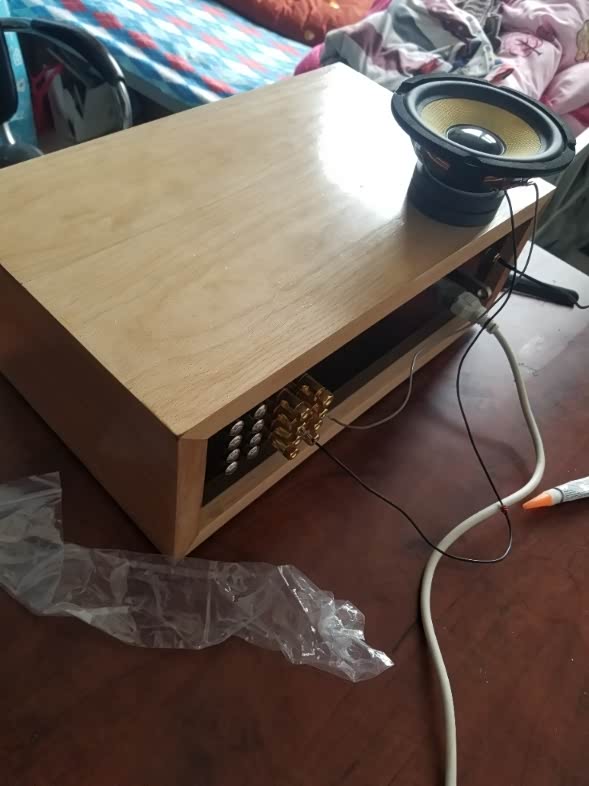 然后我觉得床板子不行,密度板影响整体效果,然后去某宝找木头加工,查百度木材的密度对音质影响。最终选择了榉木。