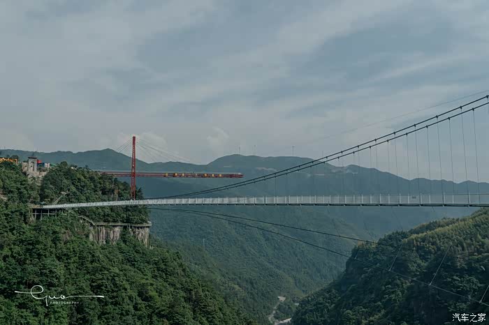 走廊悬于峭壁之上,回环于半山腰之间,如果不恐高,站在天空走廊上往下看,这里绝对是其他地方无法比拟的完美视角,脚下是碧涛翻滚的林海松阵,头顶是垂悬欲倾的绝壁险峰。