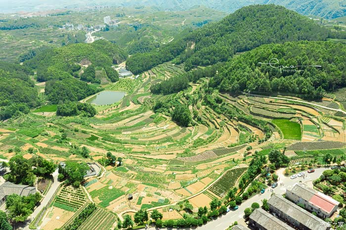 四周梯田层层,群山连绵,当在观景台上往下看,是一块块像调色盘一样的梯田,怪不得,这里叫空中村子,据说,乌石村是保存完整的以中国古代风水理论建造的村庄。