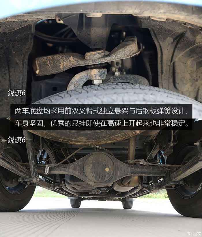 两车底盘均采用前双叉臂式独立悬架与后钢板弹簧设计,车身坚固,优秀的悬挂即使在高速上开起来也非常稳定。