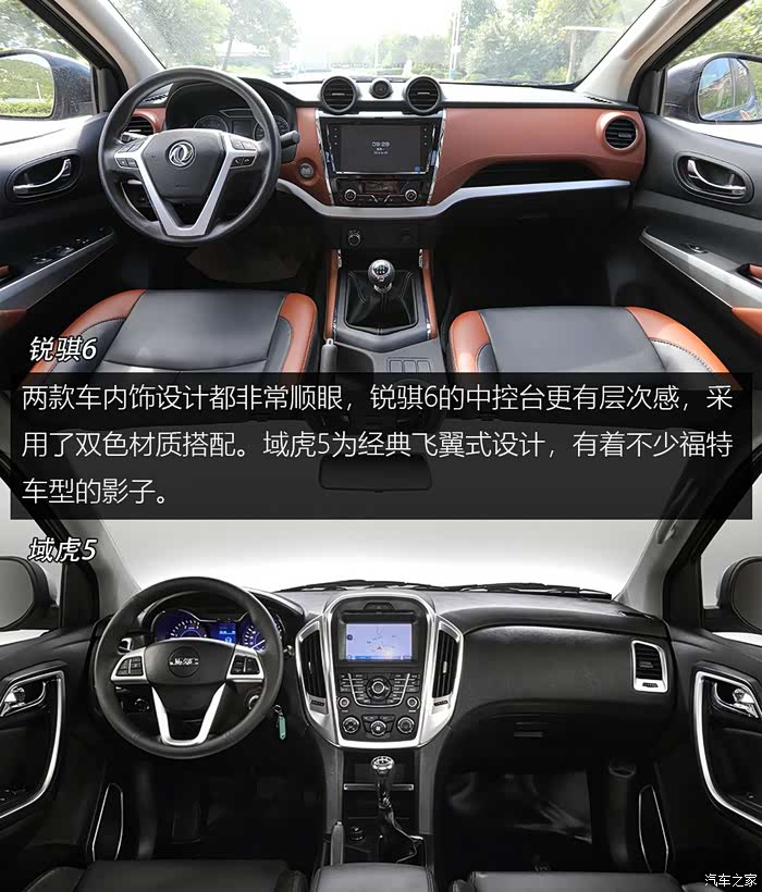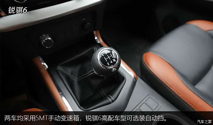 两车均采用5MT手动变速箱。但值得一提的是,锐骐6方向盘转向精准,驾驶起来富有一定乐趣,同时轻柔的离合器与短行程的挡位匹配非常到位,驾驶相比域虎5更加轻松。