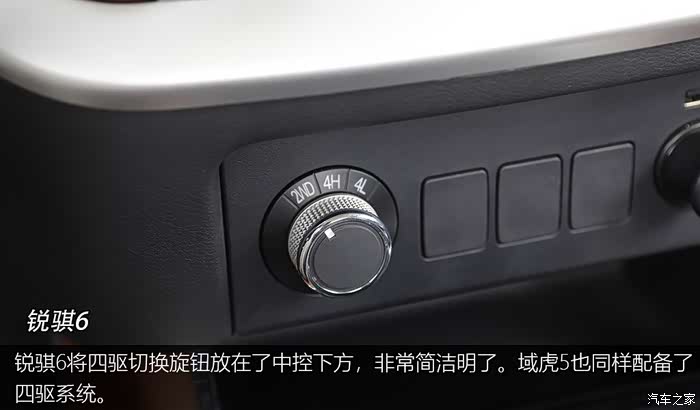 锐骐6将四驱切换旋钮放在了中控下方,非常简洁明了。域虎5也同样配备了四驱系统。