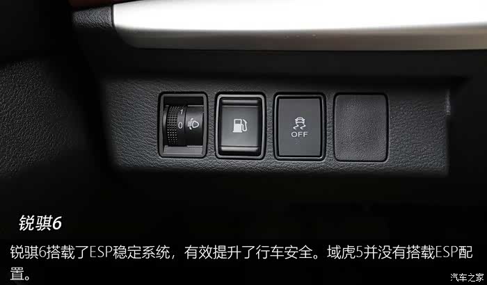 锐骐6搭载了ESP稳定系统,有效提升了行车安全。域虎5并没有搭载ESP配置。
