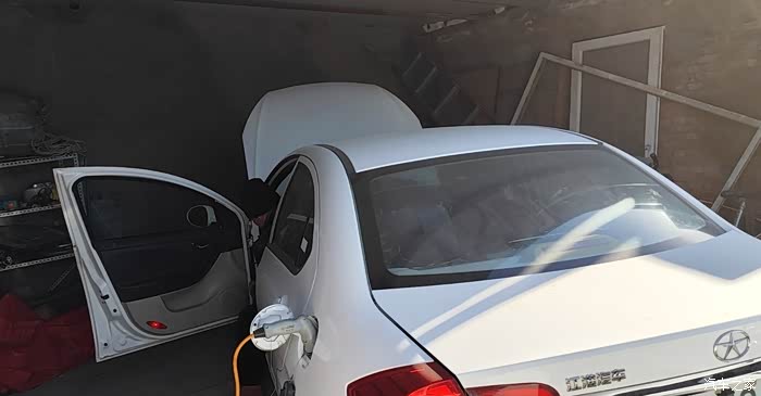先给我的车充上电,开始换充电机,拆轮胎,护板,充电机,换上新充电机,通电测试,完美启动充电!