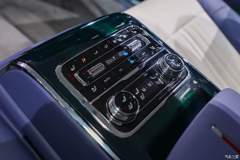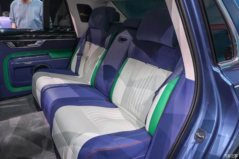 内饰方面,横向贯穿式T型中控台,显得特别规整。全液晶仪表+多媒体显示屏组成的双联屏,与右侧“山水画”融为一体,把东方古典的韵美和现代科技融合的相当到位。新车采用宽大厚实的座椅布局,座椅和外观配色同为蓝白双色,并加入了绿色元素。后排座椅靠背支持前后角度调节,中央配有宽大的扶手,可以用来控制车辆的多媒体和空调系统。