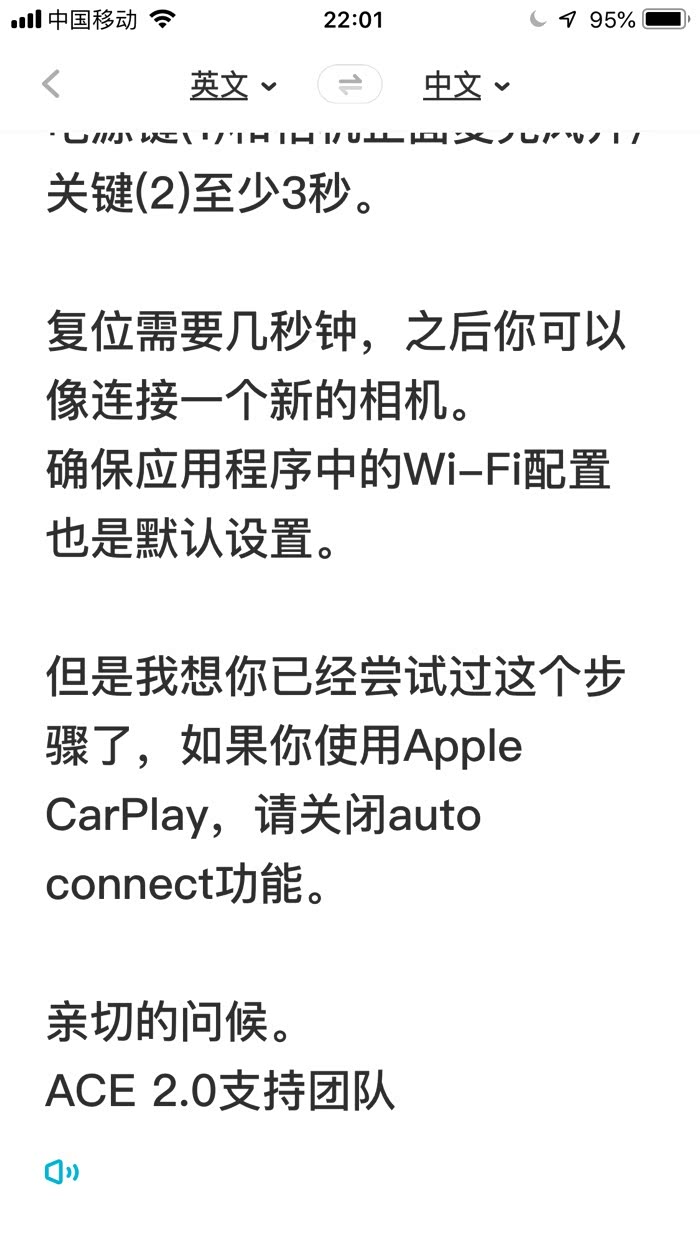 Dear Customer, thank you for choosing the Advanced Car Eye 2.0 and for contacting us. At first please restart your smartphone and try to connect again.Some app settings need this restart to get implemented. If this doesn’t fix the issue please performXSS a Wi-Fi reset.For the reset please press the ...