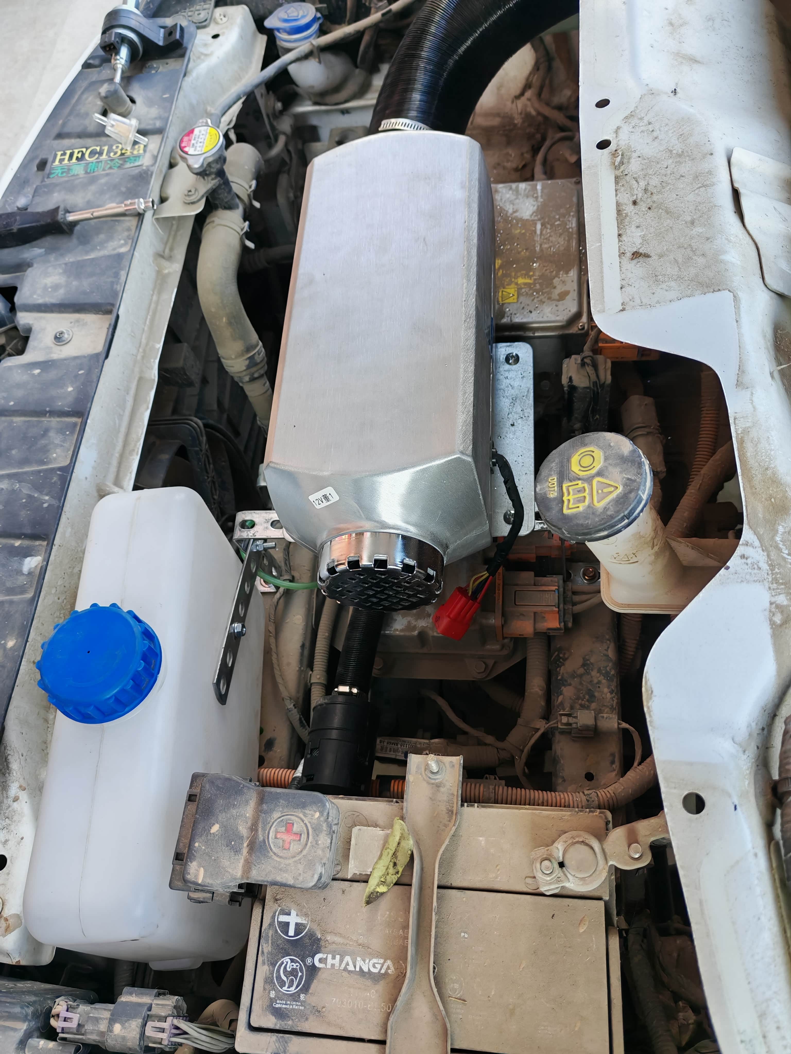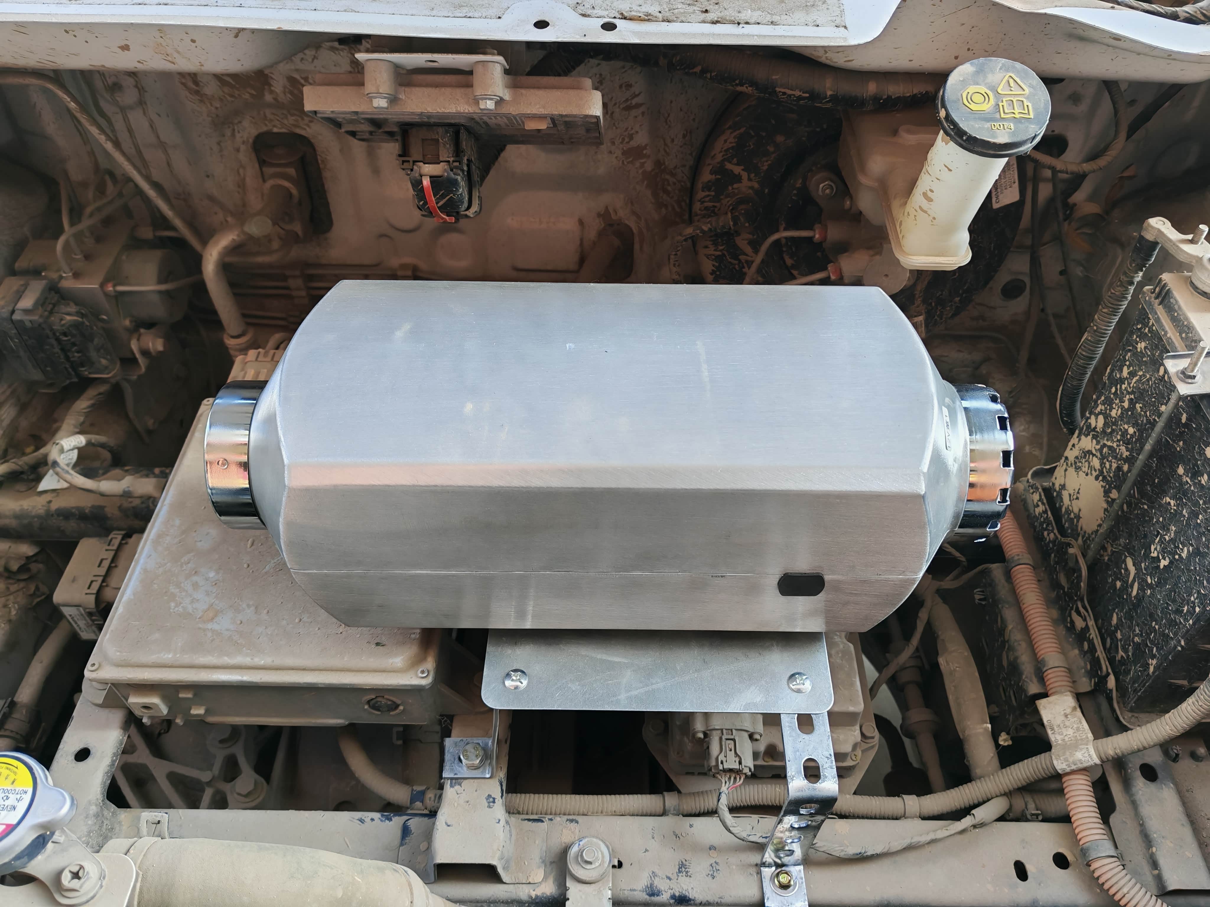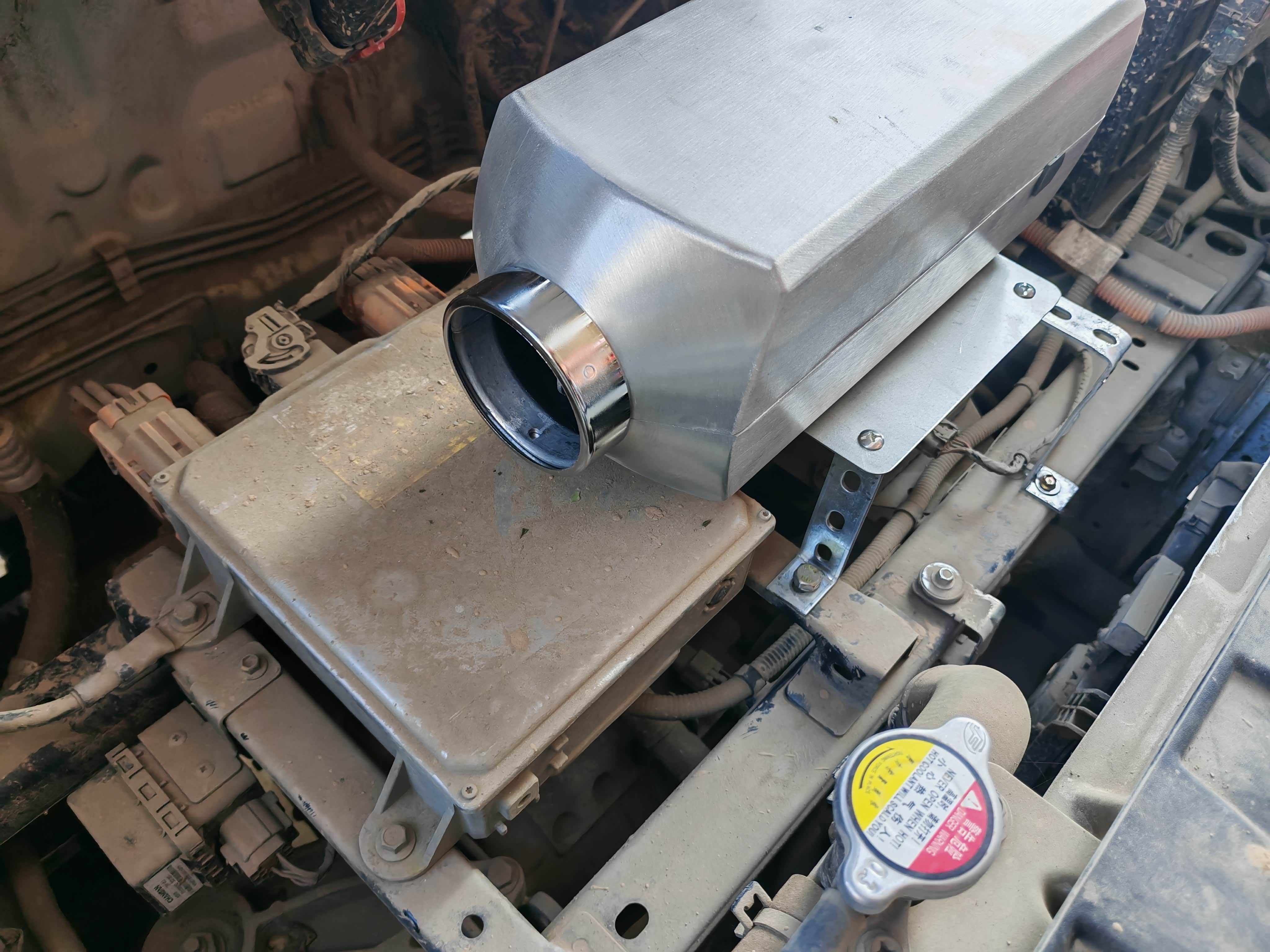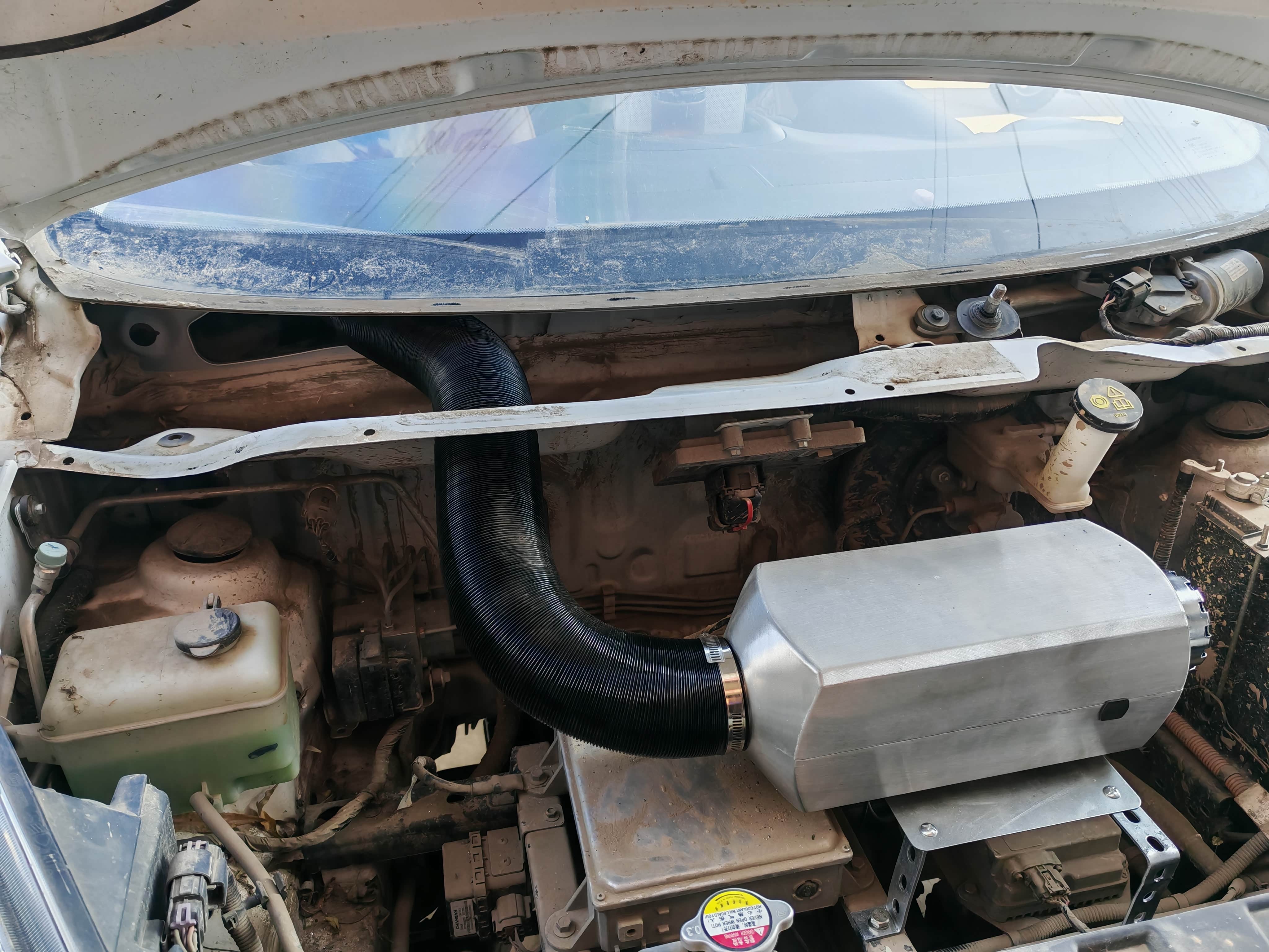 这是我最终选择的方案,也是我认为在效果、安全和空间上取得最佳平衡的折中选择。优点在于:机舱空间充裕,安装相对方便;通过精心布置管道,可以将热风引入原车空调系统的外循环入口,实现类似原厂的风道取暖,综合体验好。缺点则主要影响驻车场景:在车辆静止时使用,需要额外为柴暖的小电机供电,若长时间使用(如过夜),可能导致小电瓶亏电,需要启动车辆或使用外接电源为其补充电力。
