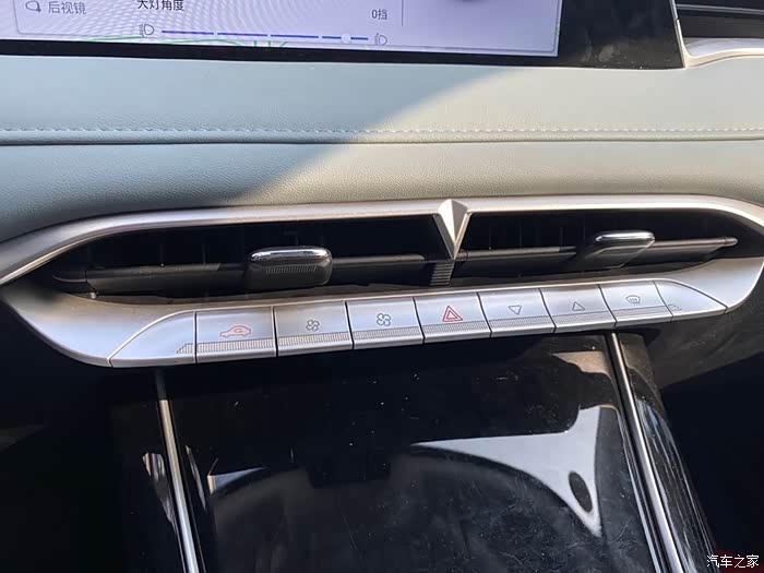 中控屏幕的下方就是一排多功能按键,钢琴样式的实体按键。简约实用方面我觉得发挥的刚刚好,响应程度也是比较迅速。对于常用的空调系统,可以做到手到擒来,迅速开启。