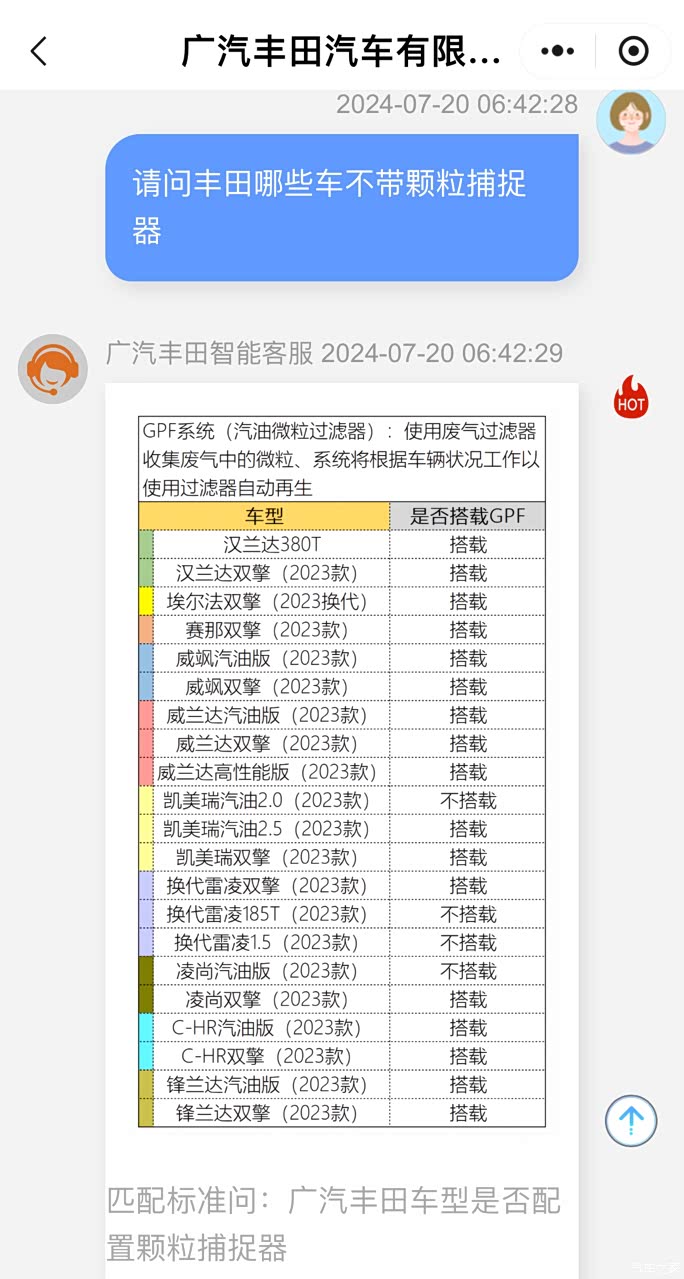 2024 年丰田 2.0 燃油发动机是不带颗粒捕捉器的,混动 2.0 才会带