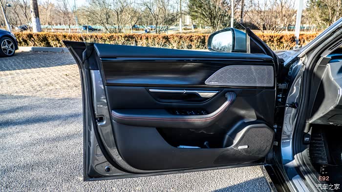 夸一下我特别喜欢汉的一个小细节,这个内饰开门把手,阻尼做得非常细腻,摸上去就很温柔,关门额声音也极其厚重