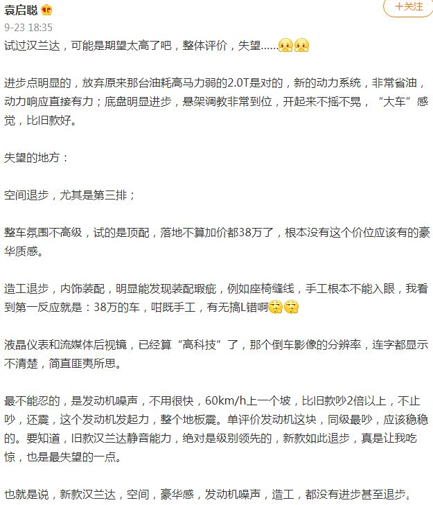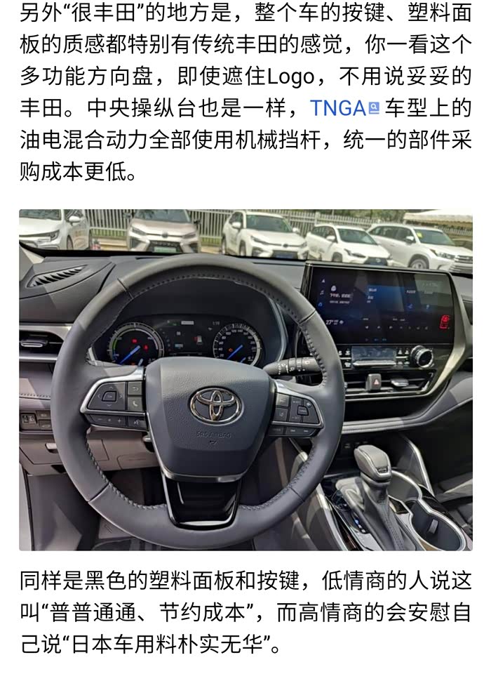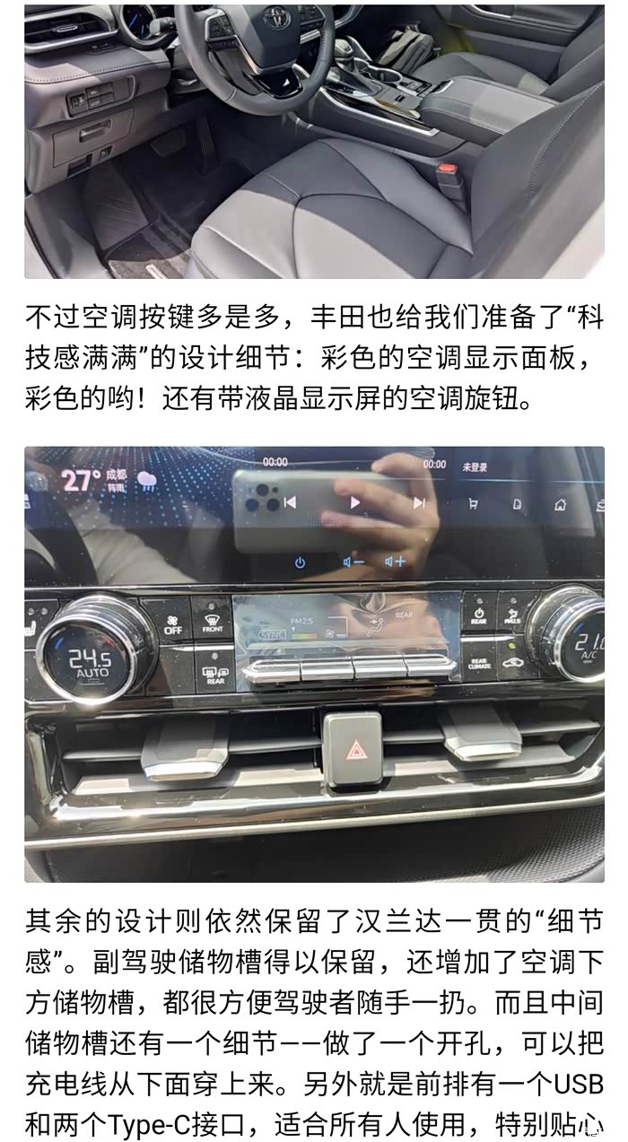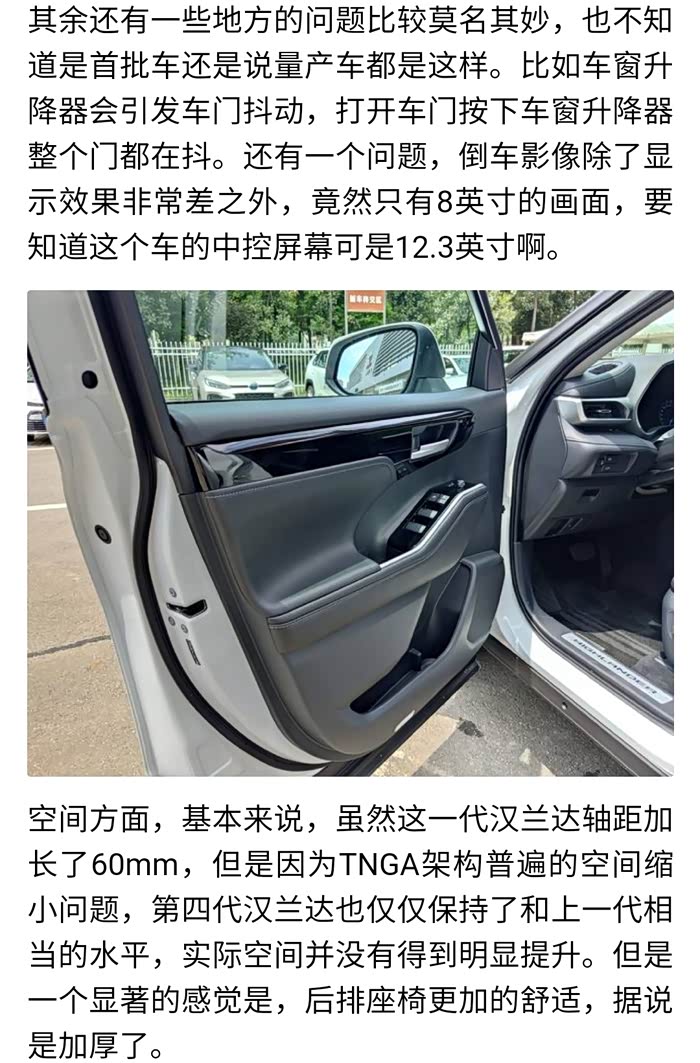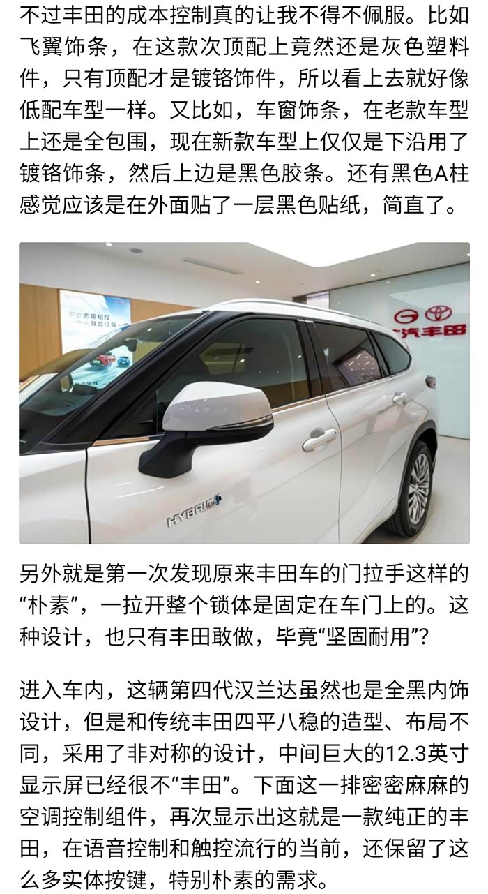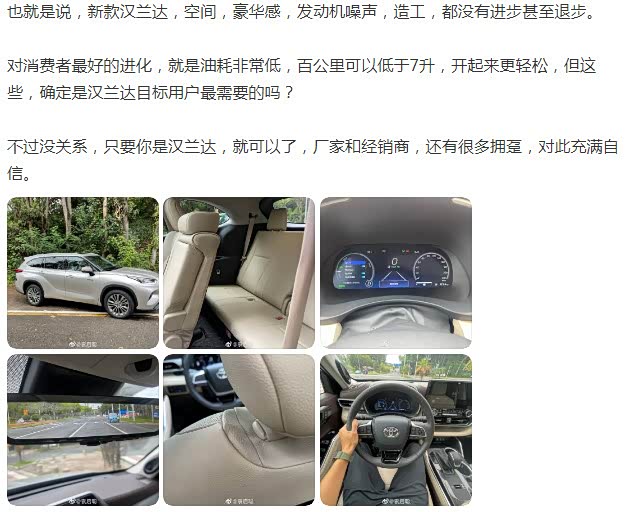 当然,并不是丰田不想提高国产汉兰达的配置,并不是不想向美版汉兰达的主流配置水平靠拢,实在是因为中国消费者对汉兰达过于热情,配置都是根据市场反馈来改变的。