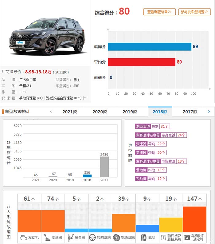 5年15万公里整车质保比汉兰达的3年10万公里稍多一点,还有GS8混动车型的电池是终身保修。现在的主流品牌国产发动机都经过上百万小时的台架试验和整车试验,正常保养和正常使用,跑个几十万公里是很难出问题的。而像爱信和采埃孚之类的变速箱更是全世界大量车型都在使用,可靠性更不用说早已经过验证了!