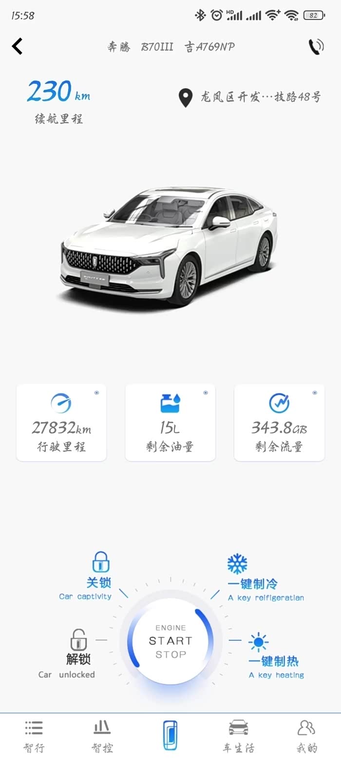 第三种解锁和锁闭方式为奔腾YOMIapp中的手机控车功能,这里可以通过两个界面进行具体操作。