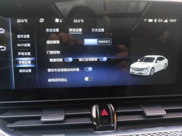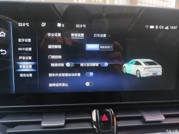 第六种解锁和锁闭车门的方式是车机系统设定的随速闭锁功能和熄火自动解锁功能。下面我主要就随速落锁进行两张图片的介绍,熄火自动解锁就不过多解释了,相信大家通过名称就可以理解了。