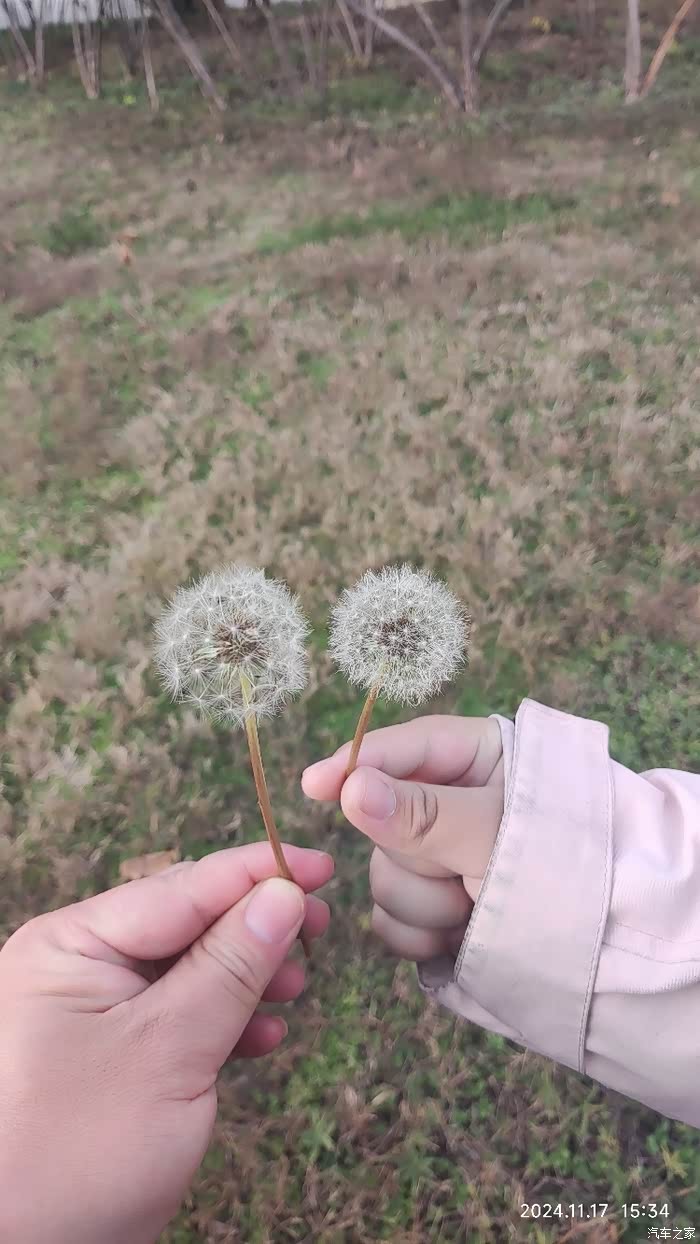 孩子们在草地里面发现一些蒲公英,玩的很开心。