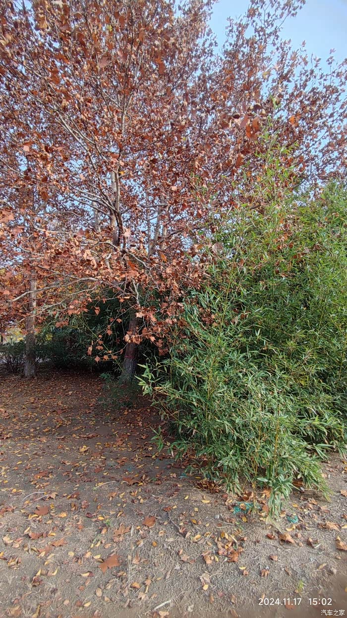 入冬以后公园给人一种萧条的感觉,没有了春夏色彩斑斓的景象,大多数的树木叶子都黄了,叶子也都大片的掉了,只有一一些竹子还青青葱葱的。