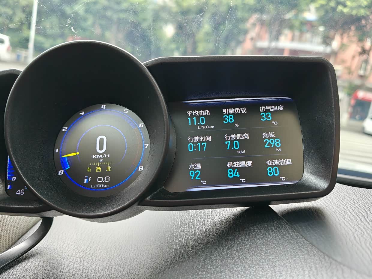 OBD仪表显示的信息一应俱全,目光只需稍稍往左偏就能看到发动机、变速箱的状态,以及海拔的变化。