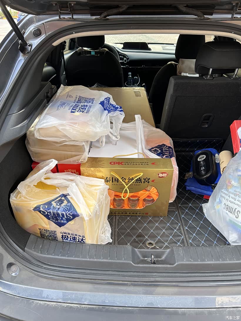 后备箱里装的是这一年沉甸甸的思念与回馈,买了山姆的软面包带给爷爷奶奶,因为他们年纪大了,牙口不好,只能吃一些容易消化的食物;买的果汁,年夜饭的时候家人们一起喝;几盒包装精美的坚果礼盒,象征着团团圆圆。每一件物品的摆放都经过精心规划,就像整理这一年来的心情。看着这塞得满满当当却井井有条的后备箱,心中涌起一股难以言喻的满足感。