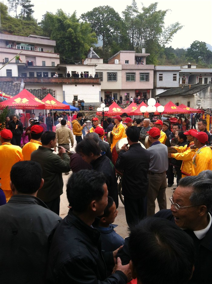 这些大伯们是锣鼓队,打的还蛮整齐的