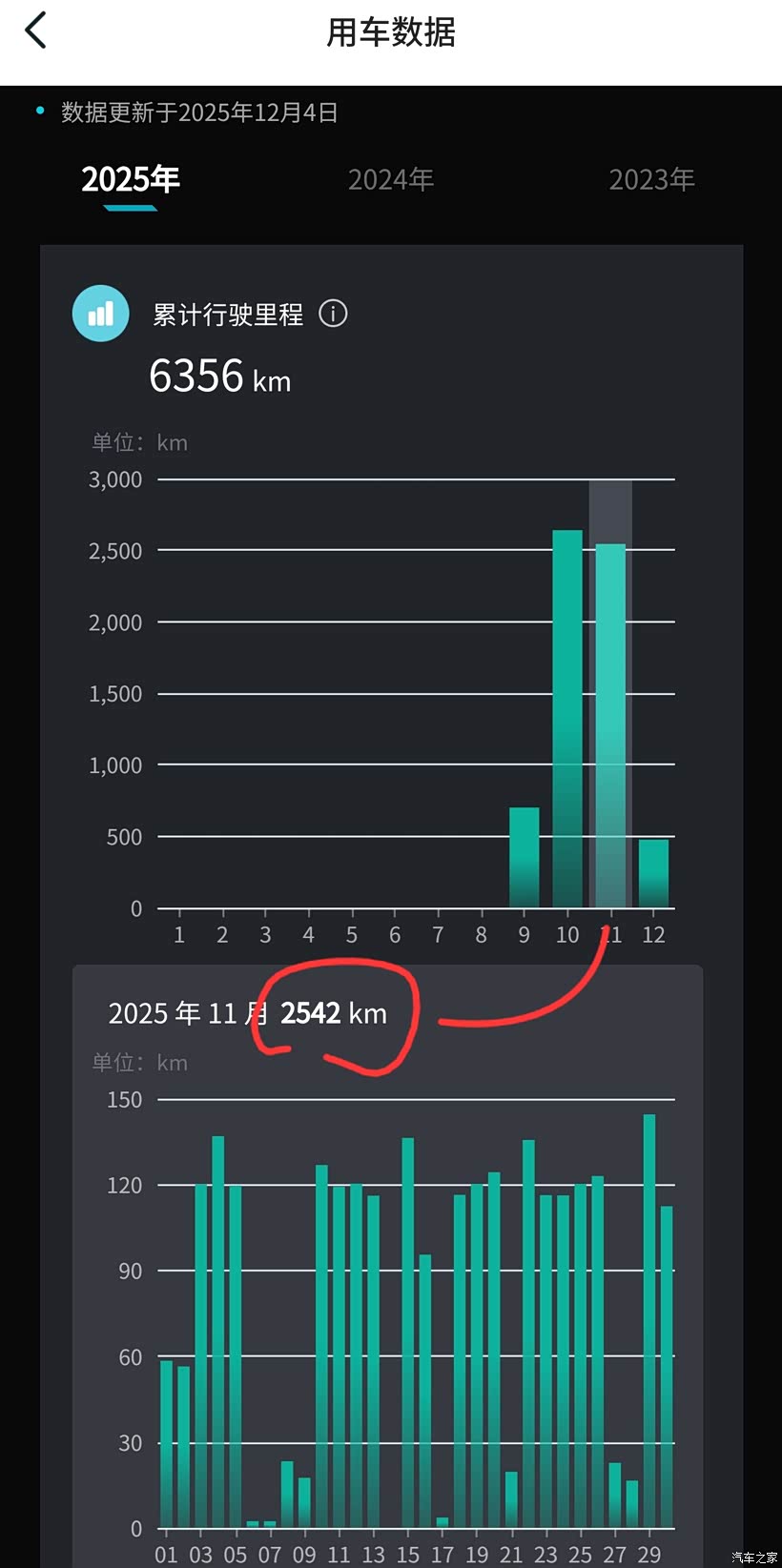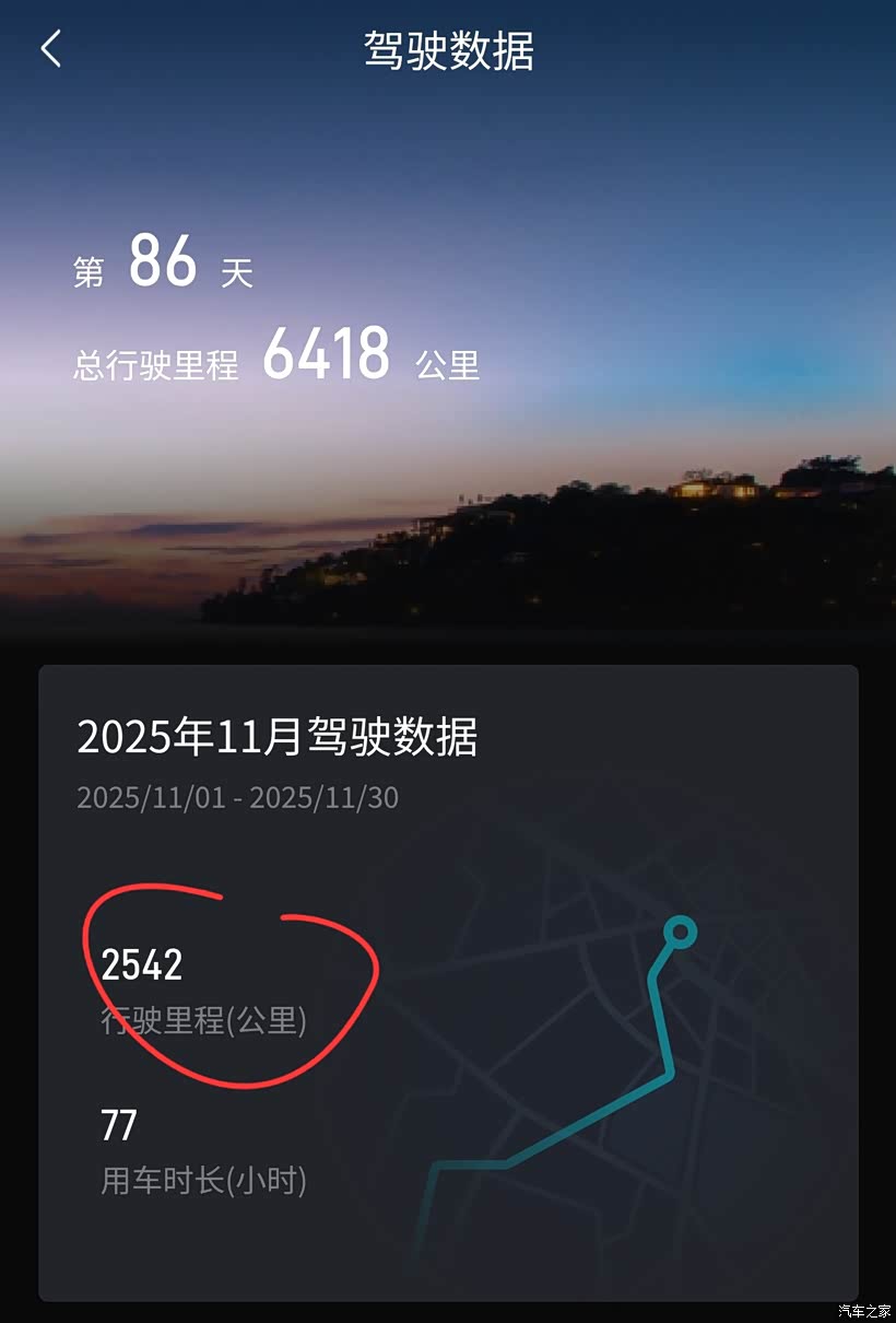 到了30号晚上回到车库,再看里程表,正好是在5884km,掐指一算,11月累计跑了2540公里,日均里程超过50公里了,而且八成是小长途的通勤,这应该也算是中高强度用车了吧?(不过广汽丰田新能源app统计的是跑了2542公里,和我记录的有点小差值,忽略不计了)