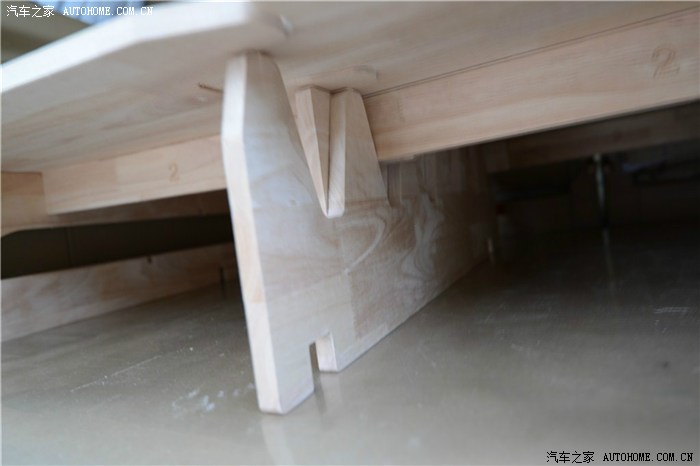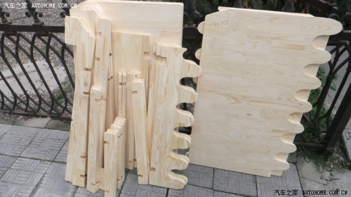 全套一共14件(每一块上面都刻有部件编号),从左到右:大床板×2;小床板(兼做后备箱纵梁)×2;短横梁×2;标准横梁×4;纵梁×4