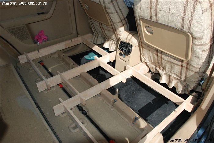8、床架前端卡在前座的导轨上,后面卡在后座的钢梁上,整体平整、稳固,能承重、扛造!