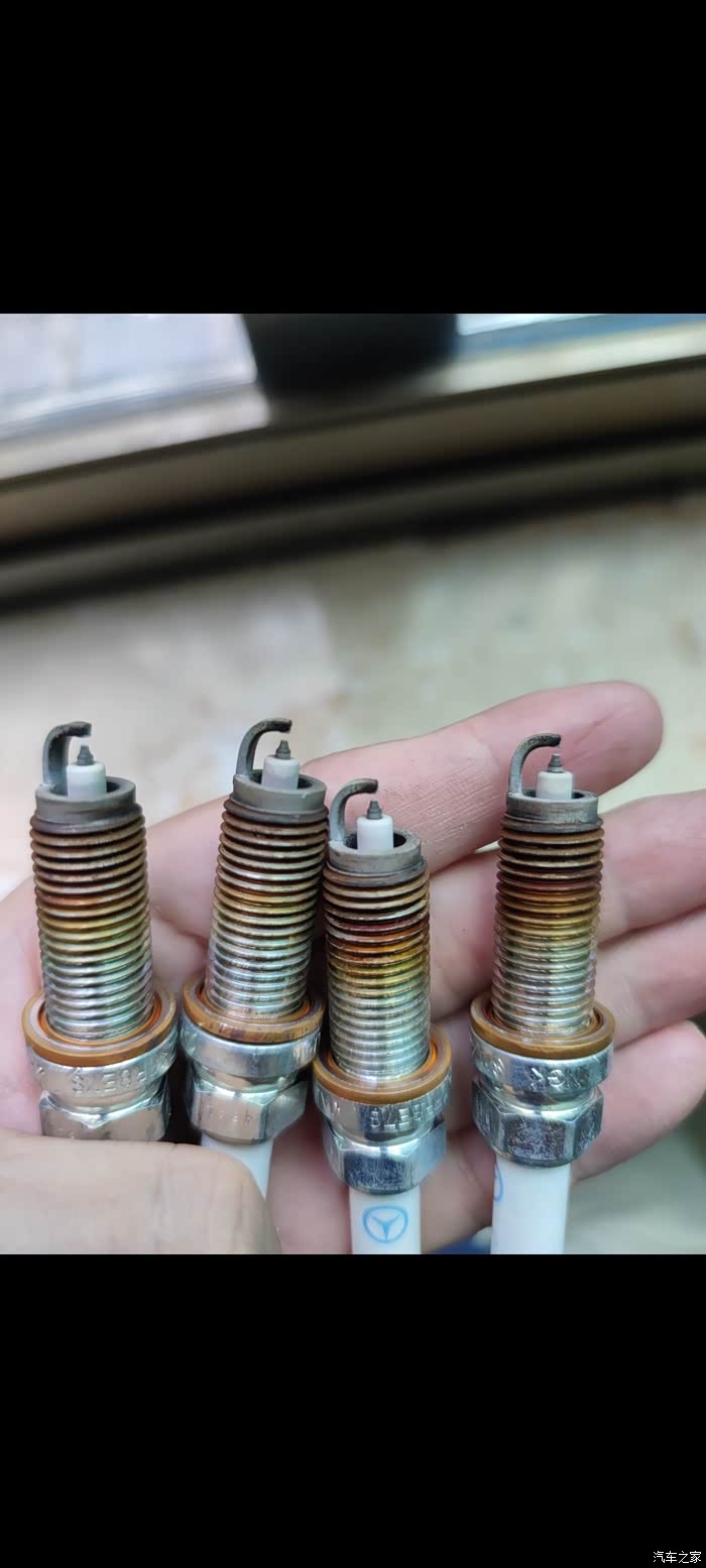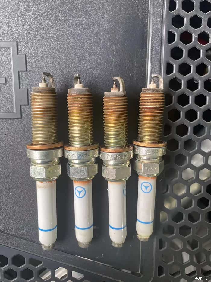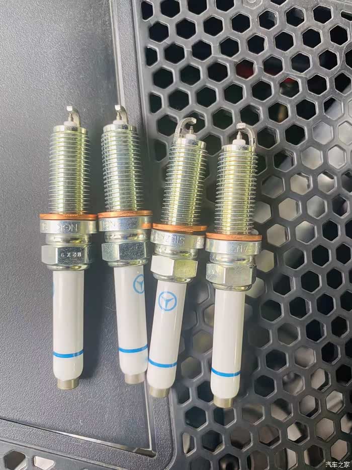 这是拆下的火花塞,行驶了4万多公里了,整体看起来4个气缸工作状态都非常好,感觉都没必要换,哈哈哈,不过原厂手册上要求这款发动机的火花塞是4万/3年这个周期更换的,可能考虑的还是性能把,毕竟火花塞是处于高压高频点火,性能稍有下降直接影响发动机功率,还是严格按厂家指导手册来执行吧;
