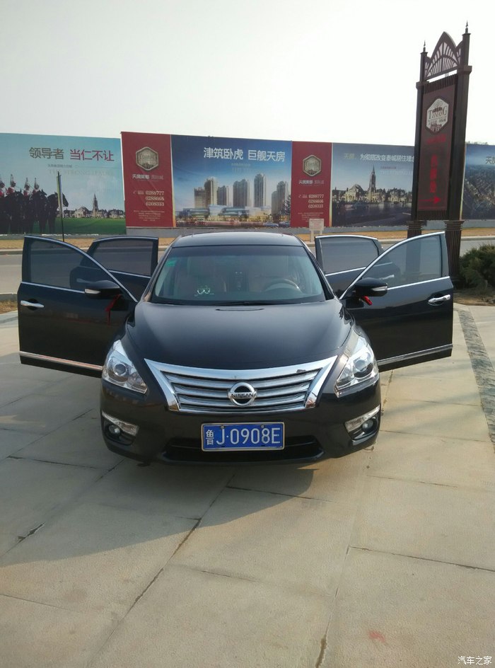 新手第一次发帖请版主编辑鼓励一下吧!天籁伴随我东征西跑两年整。带给我足足的开心幸福,以前开的车是国产奇瑞手动挡QQ.那是一段创业艰辛的历程。初次遇见天籁的时候总感觉是新款轩逸,外观变化很大。2.0CVT动力还算是可以吧!能应对泰安的各种路况需求,提速一点也感觉不到肉。减速玻璃以及车身静音做的足够厚道,以至于二年内6次违章超速。。。。无奈啊!油耗给我很大的惊喜,综合市郊路况在8个油左右。空间足够大,很是实用。车况还算是皮实,除了正常保养以外没有其它毛病。家用商用都倍有面子。好了上图分享一下吧!