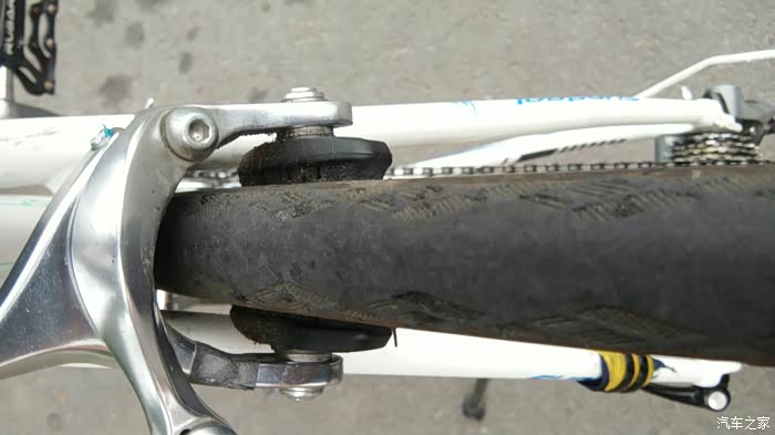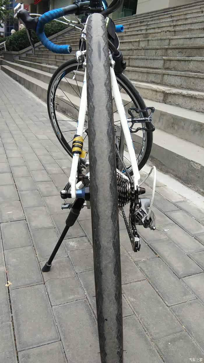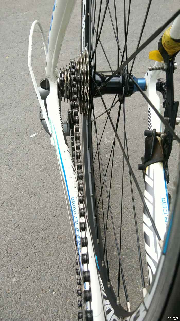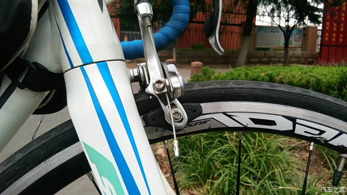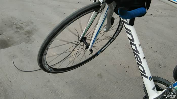 说一下轮胎充气,与山地车不同,这辆公路车的气门十分特别,特别小,一般的打气筒没法用