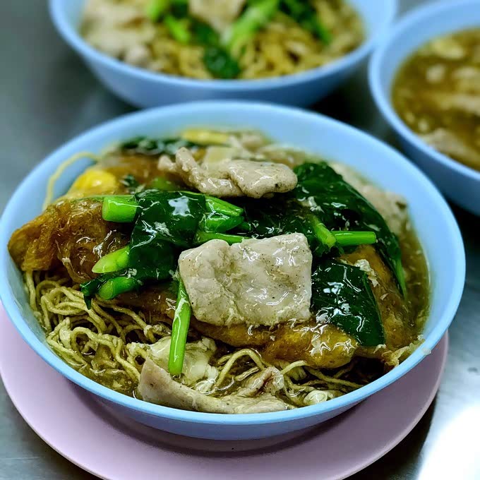Mee Krob是一种泰国特色本地饮食,不同于一般的面条,面条首先要经过油炸,虽然Mee Krob面在泰国是很常见的吃法,但是这间店味道尤为好,而且他们家的最大特色,是现炒豬肉,勾芡淋在脆面条上。建议大家点脆面条烧粉汤下蛋,价格很便宜,只要50B。所谓下蛋,应该就是会多加一个蛋,同猪肉一起炒制,成蛋花的样式。咖喱蟹外的另一个惊喜,做法上可能会有点像港澳地区的“湿炒”,但吃上去不然,我会形容为这是一个干炒与汤面的结合。叫上一个大杂烩,有嫩滑肉片带有点胡椒味,加一只炸开的鸡蛋,浸透浓郁芡汁的面条滑入喉咙,再喝上一口冰冻饮料,何止舒服~
