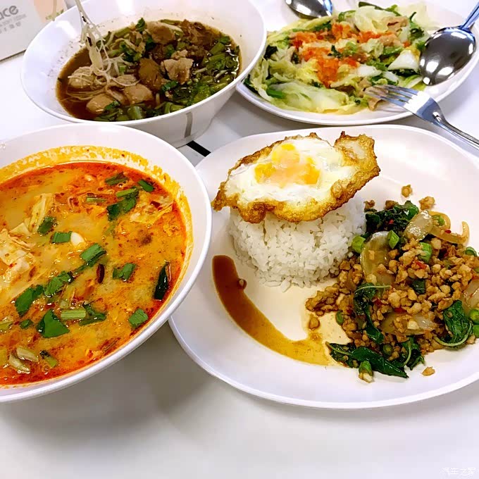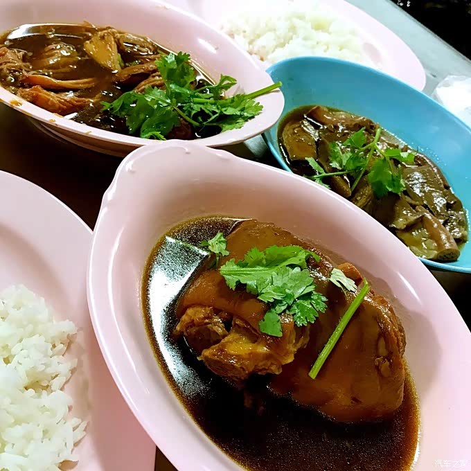 之前B先生在清迈吃过了凤飞飞猪脚饭后就一直念念不忘,之后在看XFUN的时候看到介绍这家猪脚饭的时候B先生就说一定要来试试。作为一个地道小食爱好者,绝不好错过这家小店。当然我们也可以用国内另一个大型连锁“隆江猪脚饭”作为比较,其实猪脚本身并没有吃出什么太大区别,主要体现在酱汁,和隆江猪脚饭大量的花椒八角味相比,这家猪脚饭会用更少的香料,在一个擅长使用香料的国家倒是十分少见。猪脚吨烂,肉质入口即溶,肥的部分甘香十足,味道更加和谐。遗憾是猪脚没有一直加热,吃的时候感觉有点凉,但我认为这跟泰国炎热的天气有关。这是一家推荐大家去的小店,体现真正价廉物美。但和凤飞飞比它少了一个蛋~