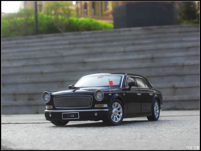 红旗L5以继承与创新为原则,采用现代化的造型语言,对中国哲学与文化重新进行了诠释和表达。侧面造型继承了老红旗前高后低的船型车身,昂首挺胸、勇往直前,彰显大气、稳重的气质,体现了昂扬向上的精神;而前部造型则以“山、水”为元素,大灯和发动机罩起伏连绵形成山形断面,水箱面罩36条直瀑飞流直下,展现出“动观流水静观山”的意境。此外,车头旗标采用传统中国红,中国红不仅是中国文化的底色,同时也象征着中国积极入世的奉献精神。演变自中国宫灯的后尾灯,则是红旗又一经典设计语言,既显典雅稳重,又独具民族风格。红旗L5还适度体现了小比例侧车窗、小尾窗、短前悬、长发动机罩等现代豪华车的特征,在整体设计表达中兼顾了中国元素与现代审美。