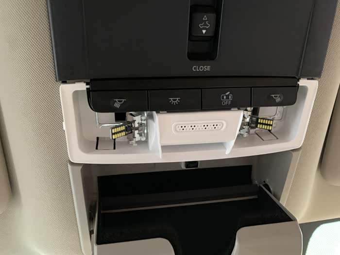 前排阅读灯,后先要拆卸灯罩,灯罩都是卡在底座上的,用手或者用工具都可以,继续大力出奇迹。