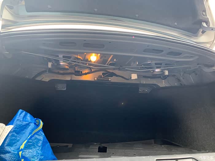 后备箱照明灯原来是黄色的卤素灯,比较昏暗,打开小盖子,用力把灯泡拔出。没有难度,大力出奇迹即可。