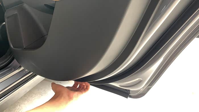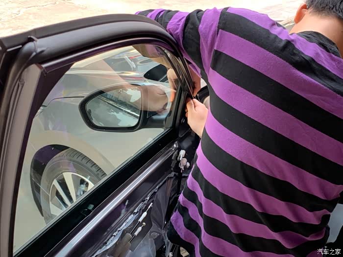 由于门缝比较大,容易进灰也会有风噪,所以我买了B型通用隔音条,从前门的后视镜位置开始安装,往下张贴。