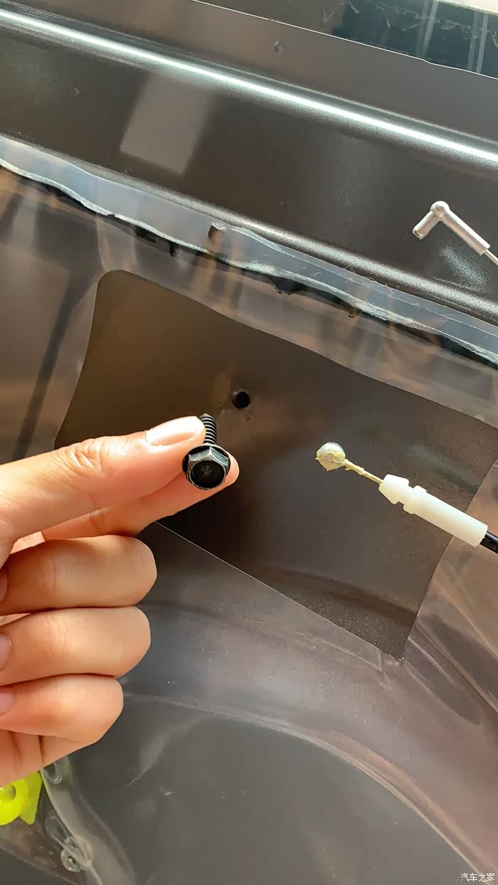 后备箱升降弹簧,这个没啥好说的,和后备箱上盖有些干扰:上盖把钢板全部包裹,原来的那些洞洞都被遮住了,我切开了一小块,来挂住弹簧。
