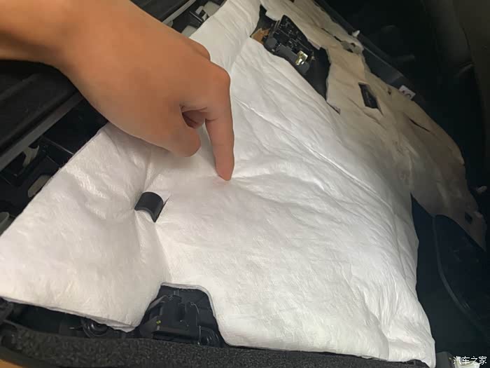 另一段贴在后门的车门位置,这样关门后,两段可以合并成一段,代替原本应该贴在B柱内侧的隔音条,节省下来的隔音条足够再贴一个后备箱。
