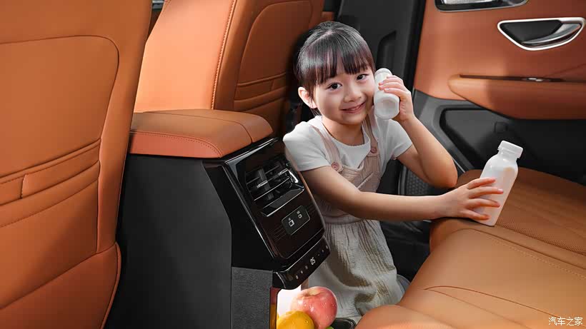 更厉害的是扶手箱下后方暗藏着一个5L容量的大冰箱,冰箱具备冰淇淋/冷饮/保鲜/冷藏/温奶/热饮6大智能模式,温控-6℃-50℃,支持紫外线杀菌,将生活和出行进一步融合在了一起。