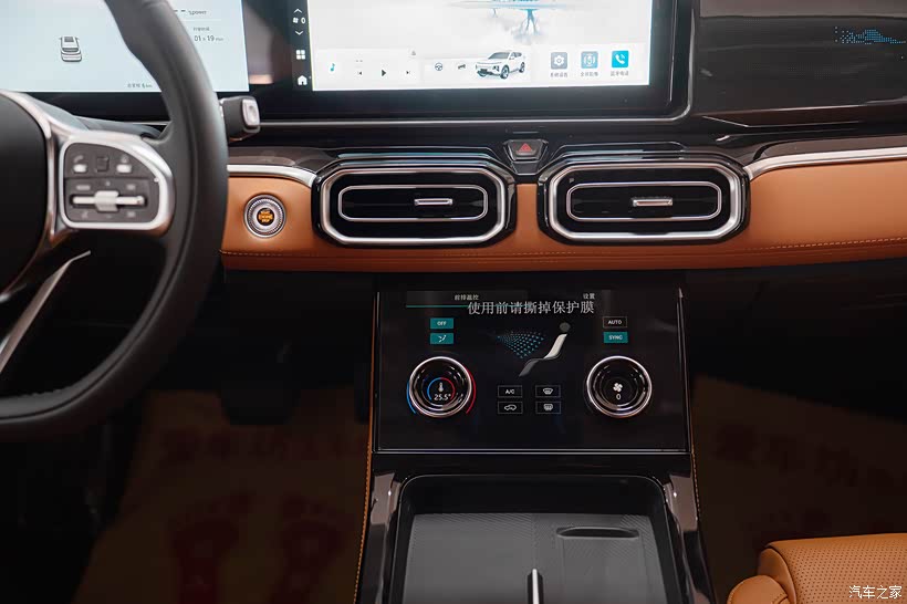 为了获得更好的拍摄效果,在我略显无耻的要求下,店长和我一起撕掉了车内各种保护膜。换一句话说,这是一辆妥妥的新车,不过ta没有丝毫我们熟悉的那种的“新车味”。除了车内大量使用零异味无甲醛母婴级亲肤选材之外,捷途山海L7 的新风健康座舱通过CN95滤芯、负离子发生器、PM2.5检测等方式进一步净化了车内环境,“新车味”在这辆车上荡然无存