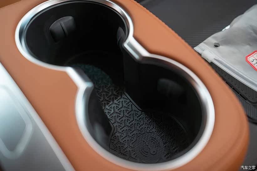 杯架不但设有限位装置,底部还设置了花纹增加摩擦力。同时遥控钥匙触电也位于这个位置,当遥控钥匙没电状态下,将遥控钥匙放在图示区域,可以启动车辆。