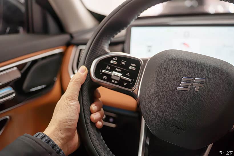多功能方向盘使用优质皮革包裹,手感软弱舒适。