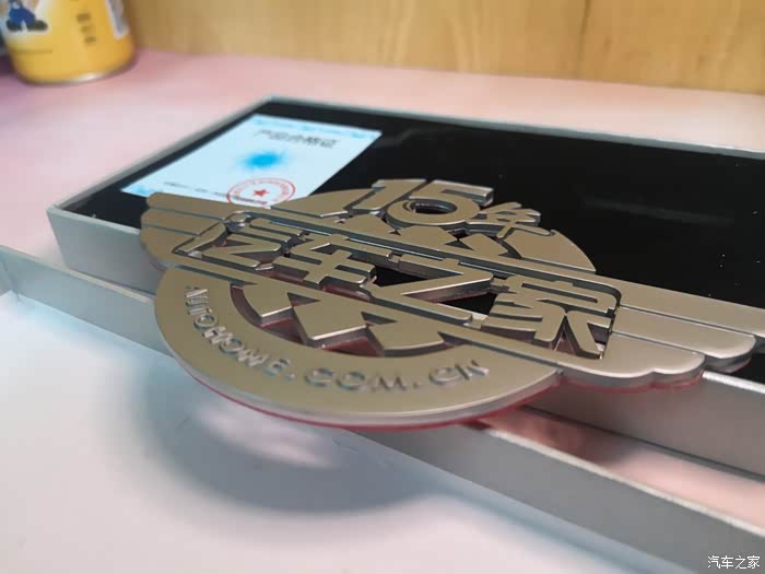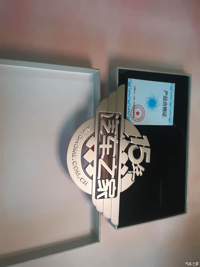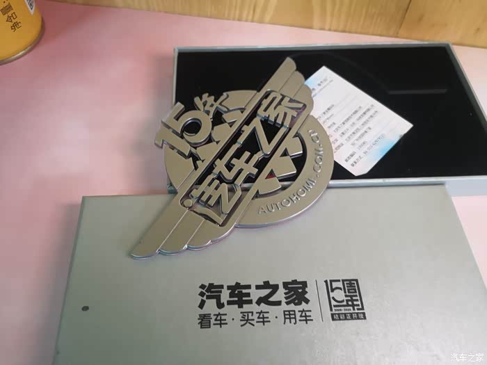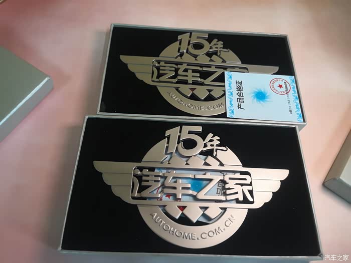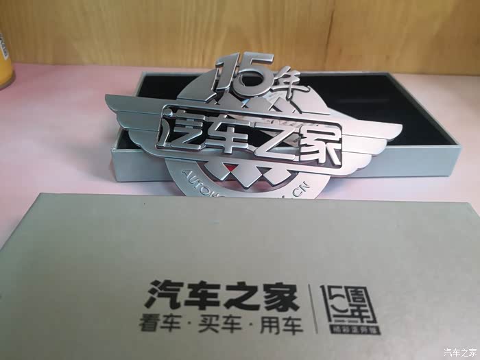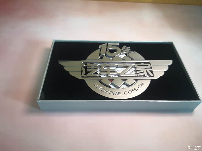 玩汽车之家这么久金属车标每位车友都比较喜欢,普通PC车标比较常见,金属车标还是比较难得,去年活动活动几个十五周年金属车标还是非常开心,金属车标拿在手上沉甸甸的感觉,款式像飞翔的小翅膀 车标还是很大气,15也是代表汽车之家成立十五年,可惜的是十年的没有弄到,我的荣威小六也贴上了十五年金属车标,还剩下几个得好好收藏着,毕竟我也是汽车之家忠实粉丝,家家定制商品家里也堆放不少,