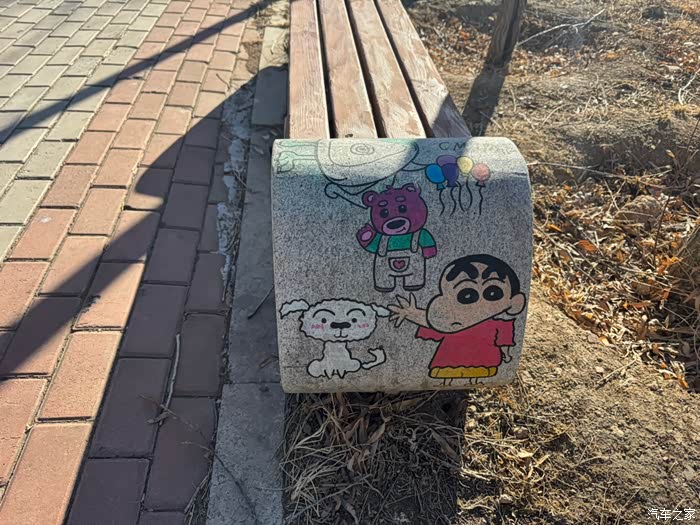 第二天一早,就开启了找春天的步伐,诺大的公园,没有一株绿意,更不会有一丝花香,有的只是清新的空气和湛蓝的天空,最重要的是我找着了一处绝美的涂鸦,谁家宝这么有才。