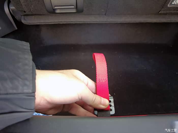 说真的,第一次怎么拿出第三排座椅。完全是销售顾问教的,没有注意到有说明。我现在已经总结出一套流程了,一手下压,另一手提起红色拉手。座椅就出来了,哦耶~