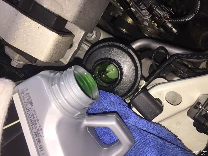 最后把方向打到左边,重新抽干净壶里的油,再把新的助力油倒进去,全部的操作,1升的油量足够一次的更换。